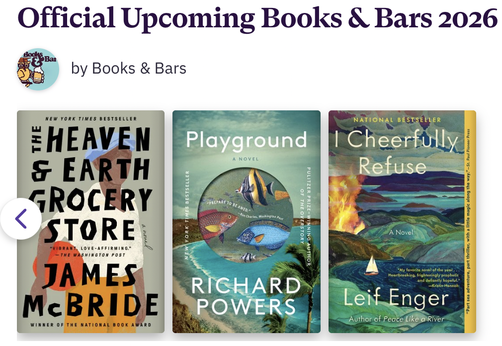 Mail list for more info: https://booksandbars.com/mail-list/